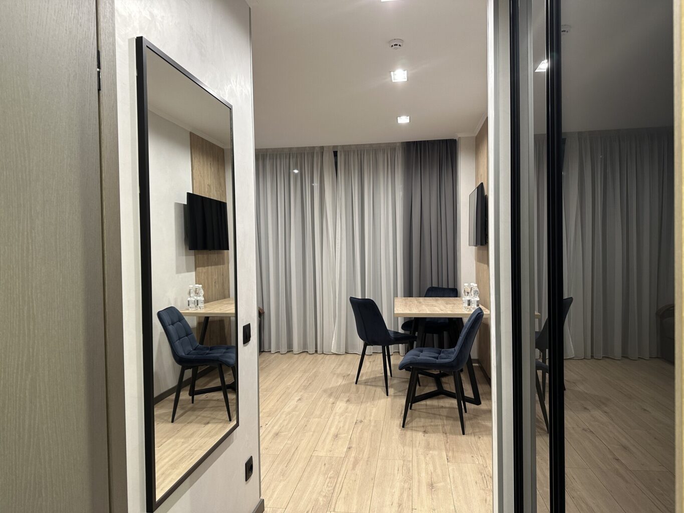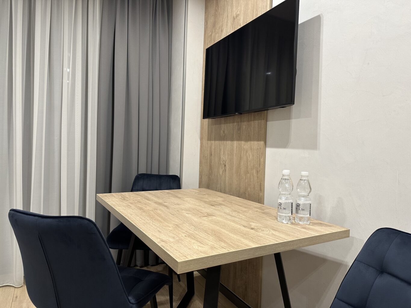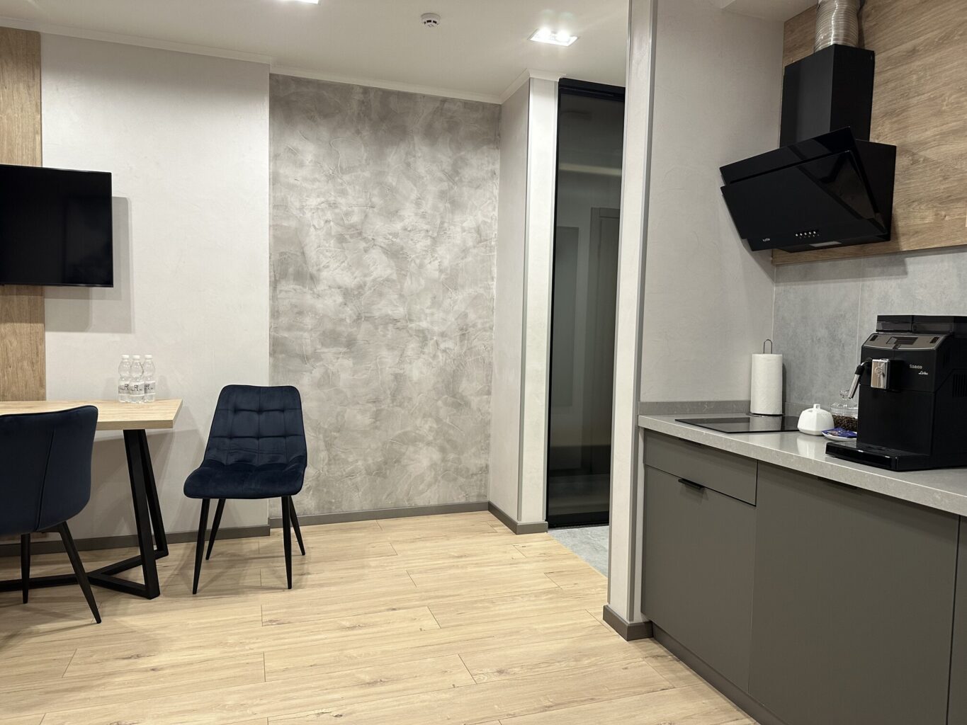 Ідеальні апартаменти під інвестицію чи власне проживання. Простора кухня-вітальня з розкладним диваном, обіднім столом на 4 персони, вмонтованою зоною кухні, яка має весь набір посуду та побутової техніки провідних світових виробників для