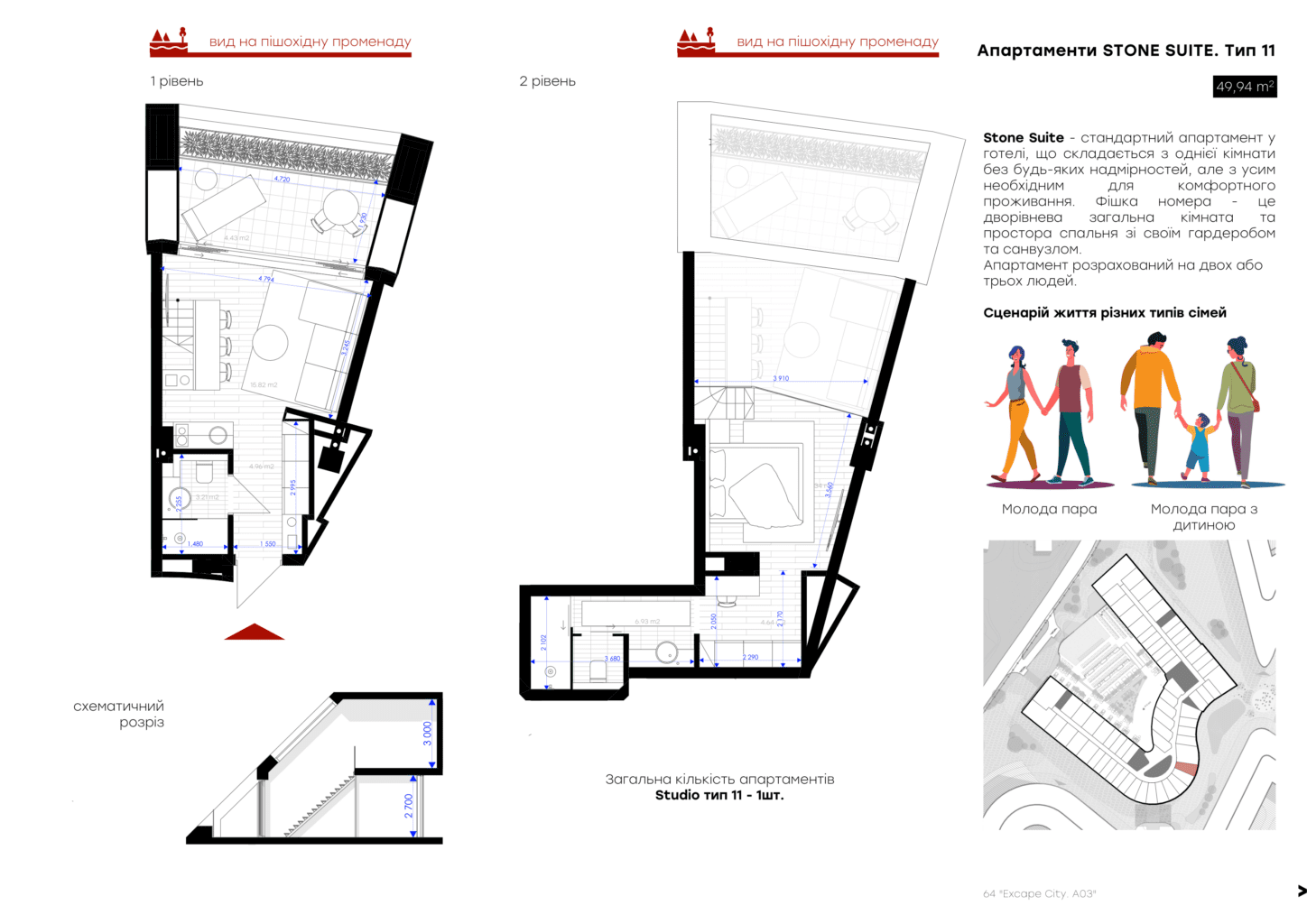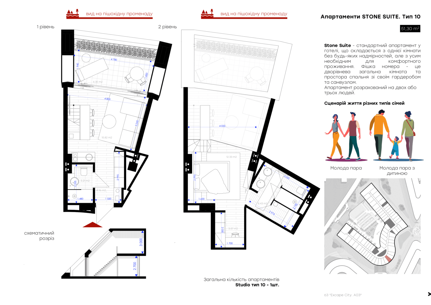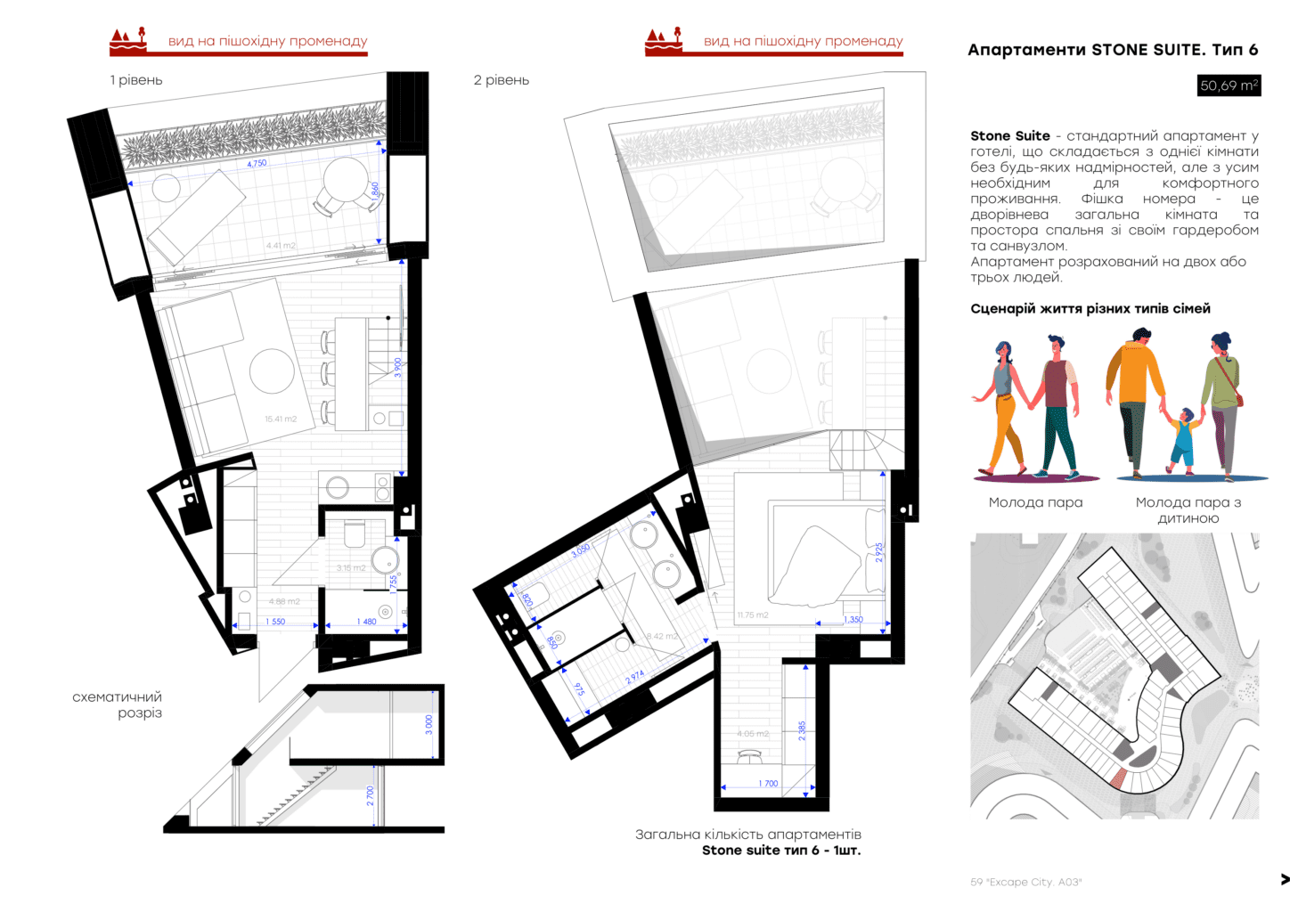 Для вашого комфорту ми створили різні площі обʼєнані єдиною концепцією величного атріума, open space простір з панорамним склом висотою біля 7 м, який об’єднує 2 поверхи апартаменту та створює відчуття польоту та єдності з природою. Найбільш популярне планування серед елітних туристичних курортів преміальної Європи .