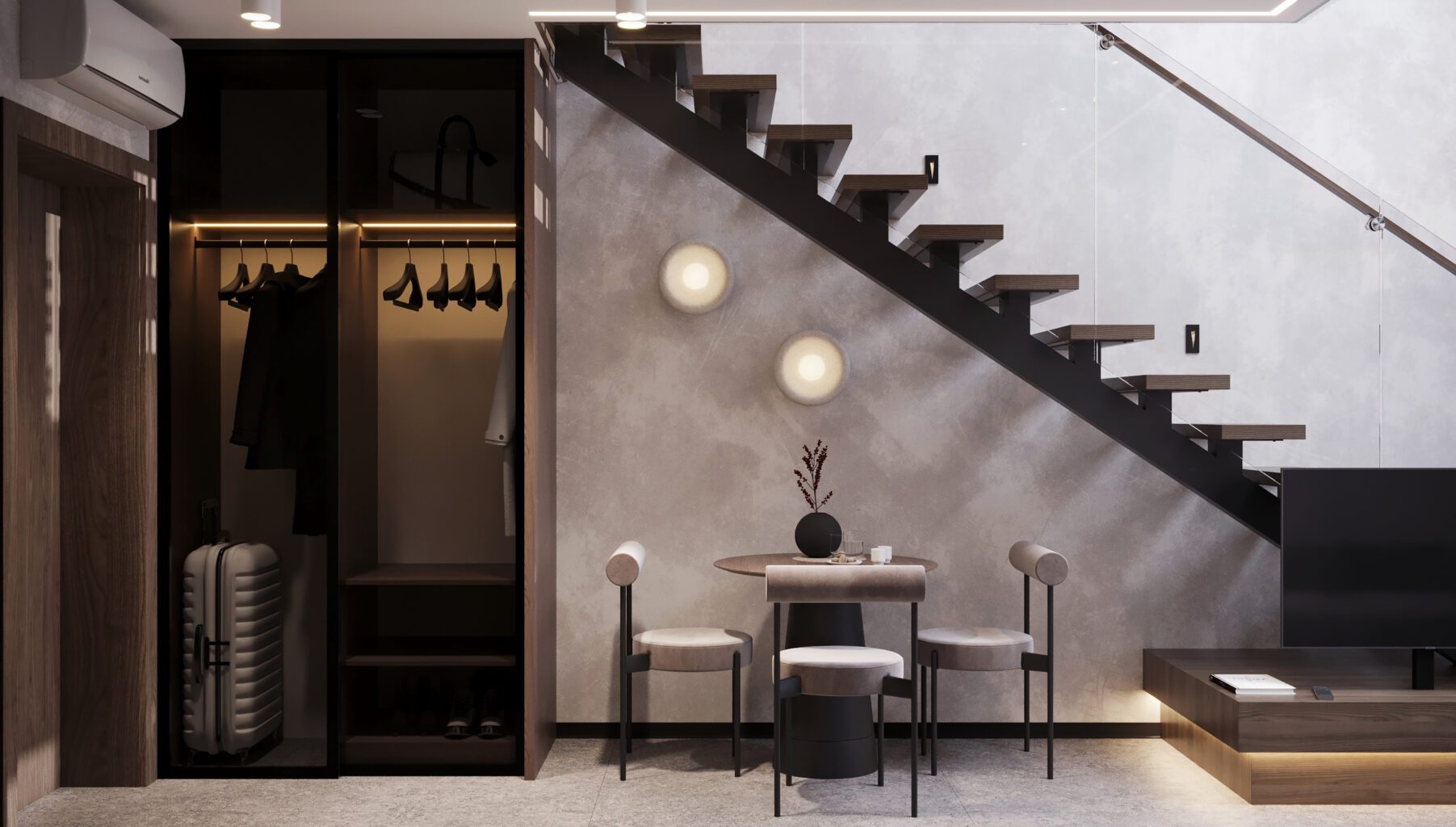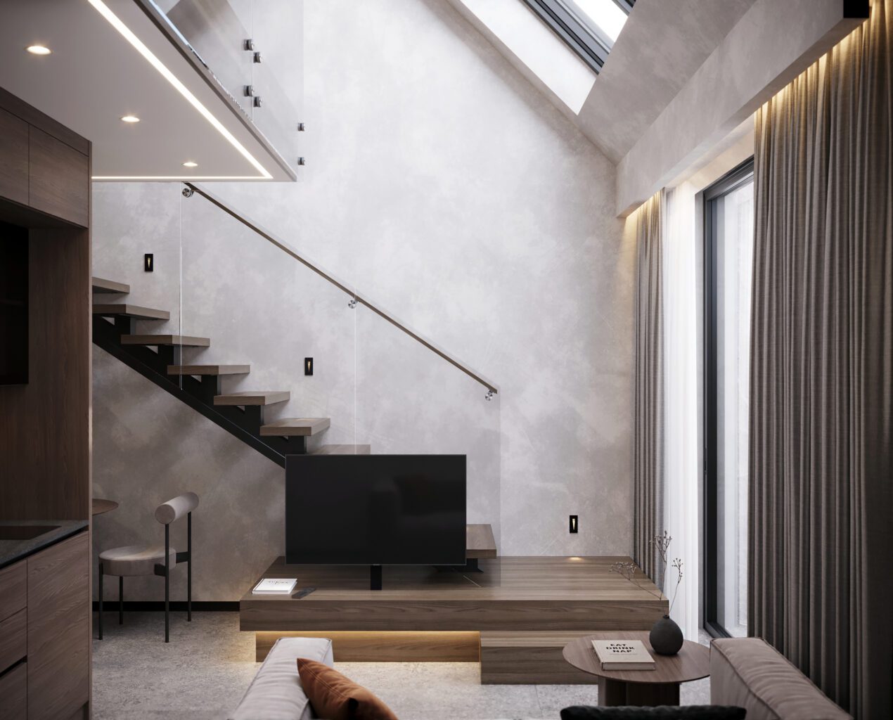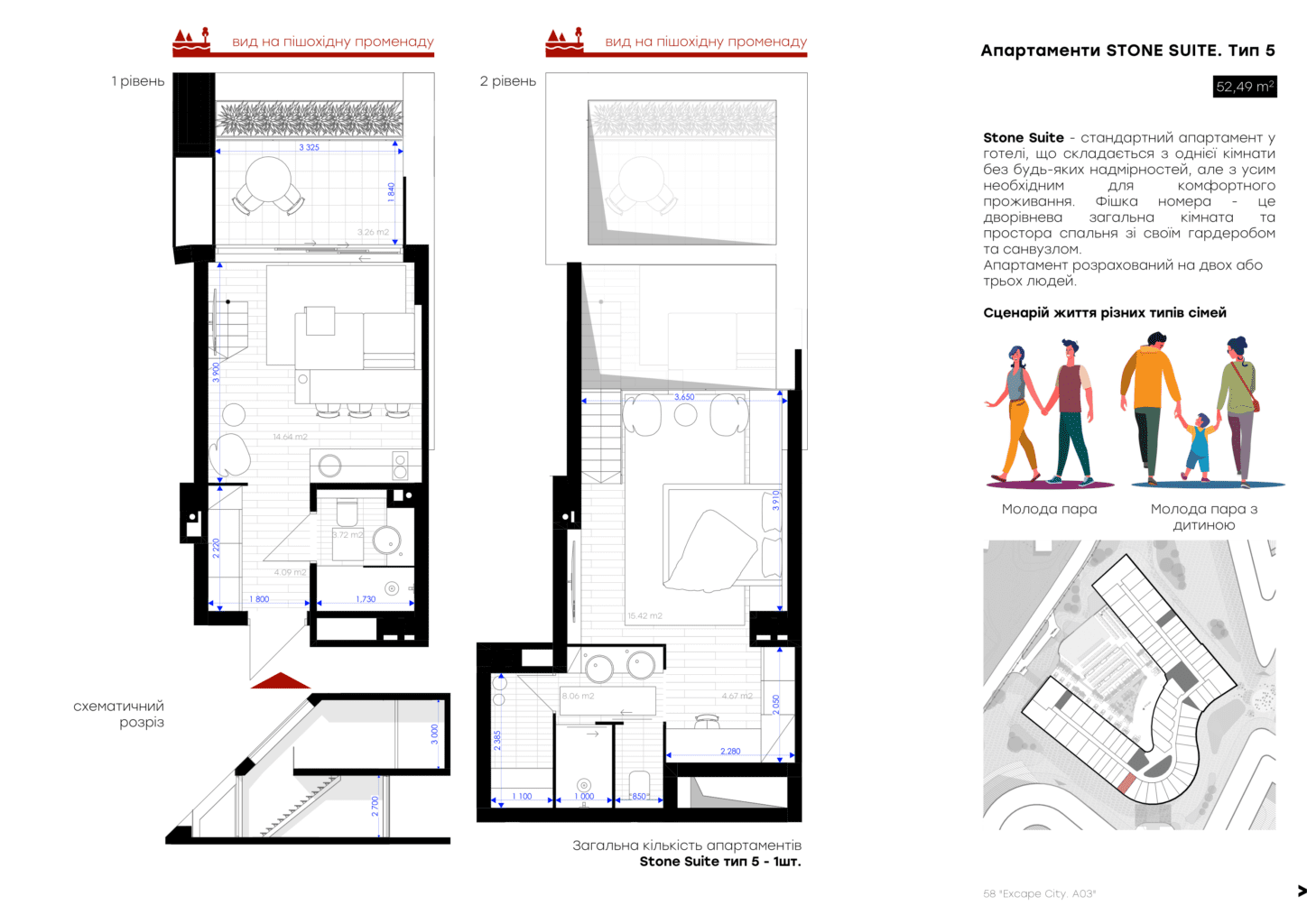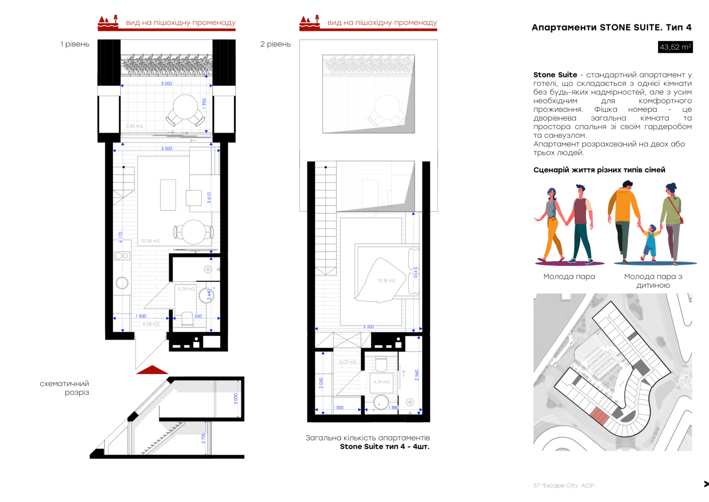 Для вашого комфорту ми створили різні площі обʼєнані єдиною концепцією величного атріума, open space простір з панорамним склом висотою біля 7 м, який об’єднує 2 поверхи апартаменту та створює відчуття польоту та єдності з природою. Найбільш популярне планування серед елітних туристичних курортів преміальної Європи .