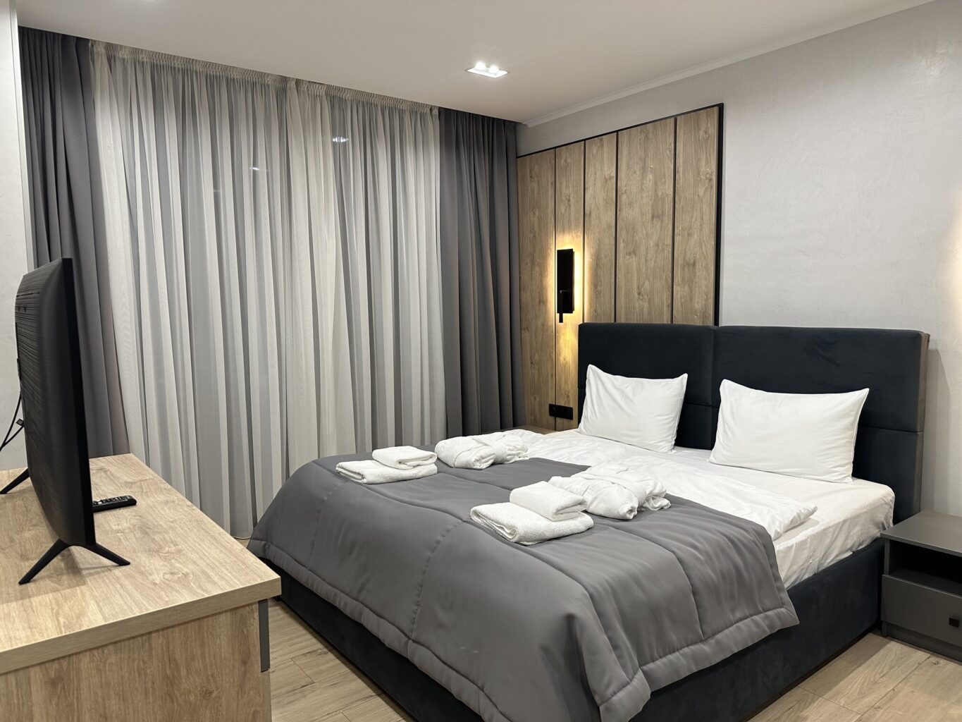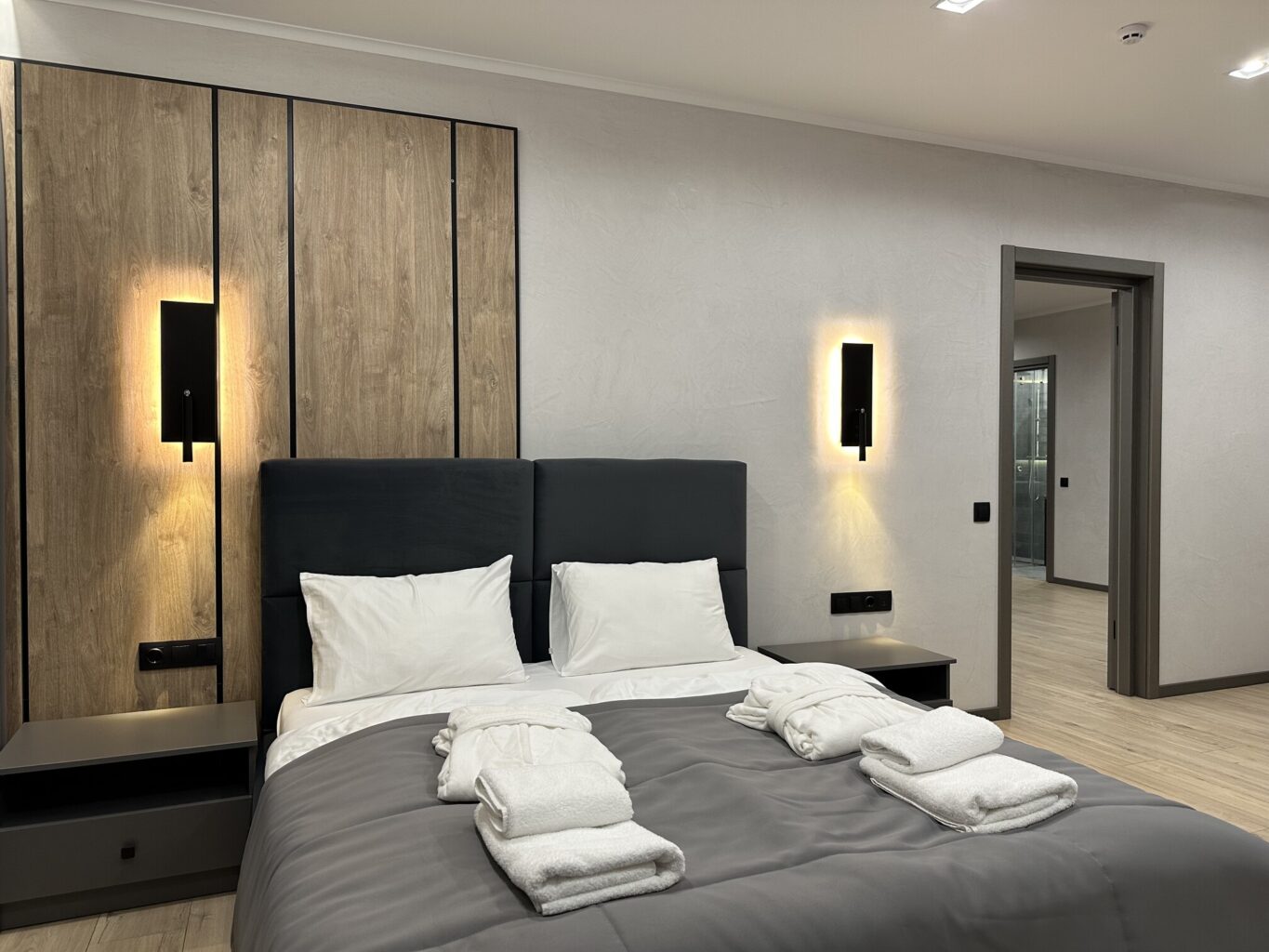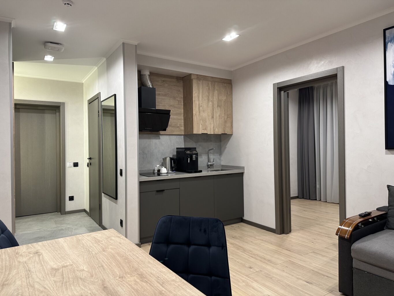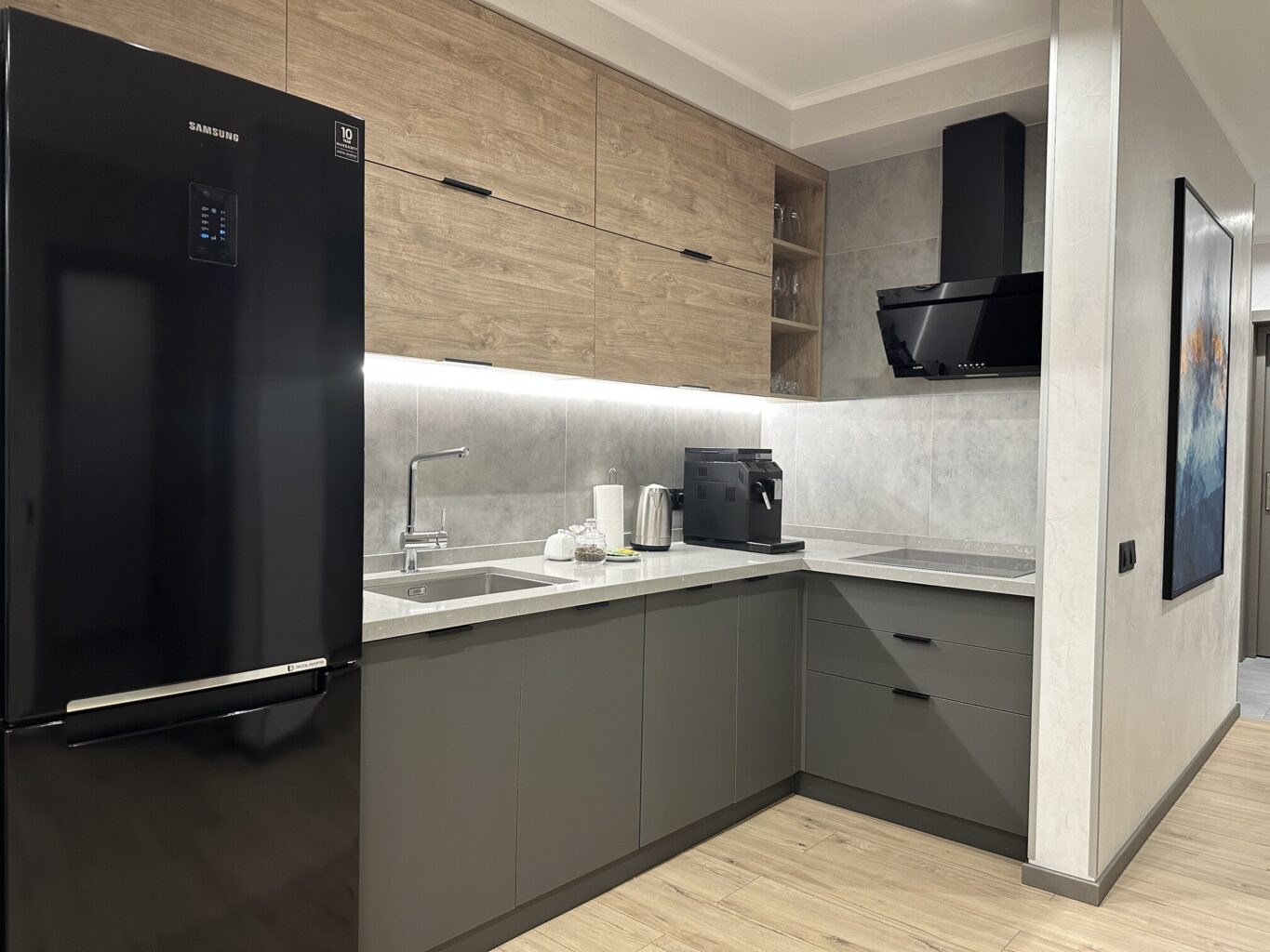Апартаменти, які особливо підійдуть поціновувачам власного простору та приватності. Кухня з двокамерним холодильником, пральною, посудомийною, кавовою машинами, вітальня з кутовим диваном, обіднім столом та власним гостьовим санвузлом нікого не залишать байдужим.